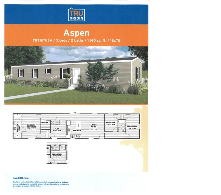 The ASPEN Exterior. This Manufactured Mobile Home features 3 bedrooms and 2 baths.